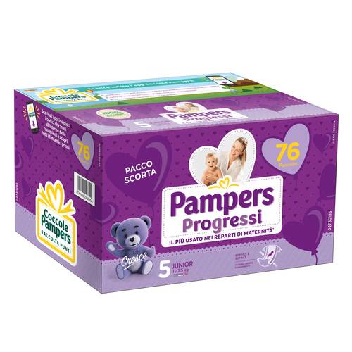 Pampers Progressi Junior, Taglia 5 (11-25 kg), 76 pannolini.